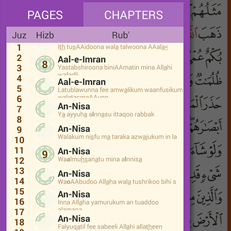 Slice you finger from left edge of your device to the middle of screen to open page summary. click on any sura to directly jump in read mode.